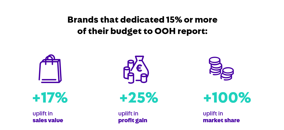 These heavy users of out-of-home achieved stronger results across both short- and long-term metrics. For example, sales, market share, and profit grew more than for brands that did not invest in out-of-home.